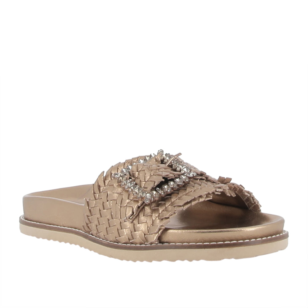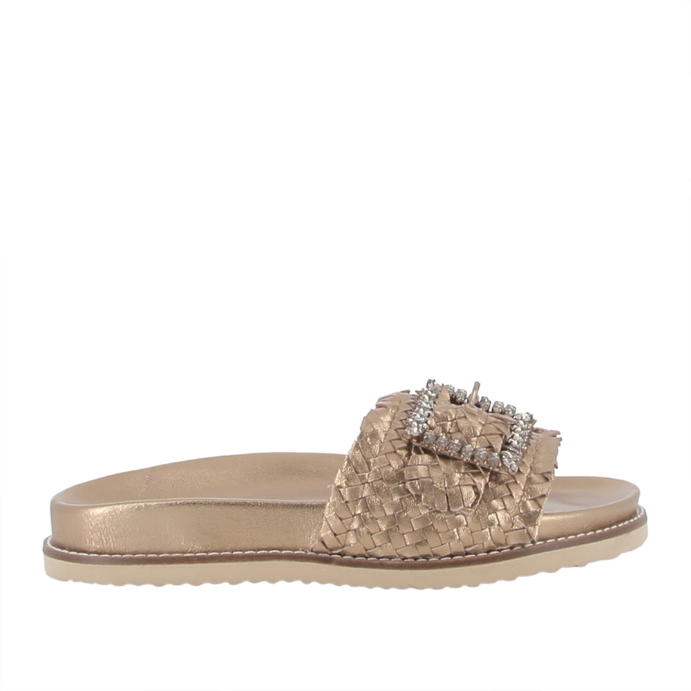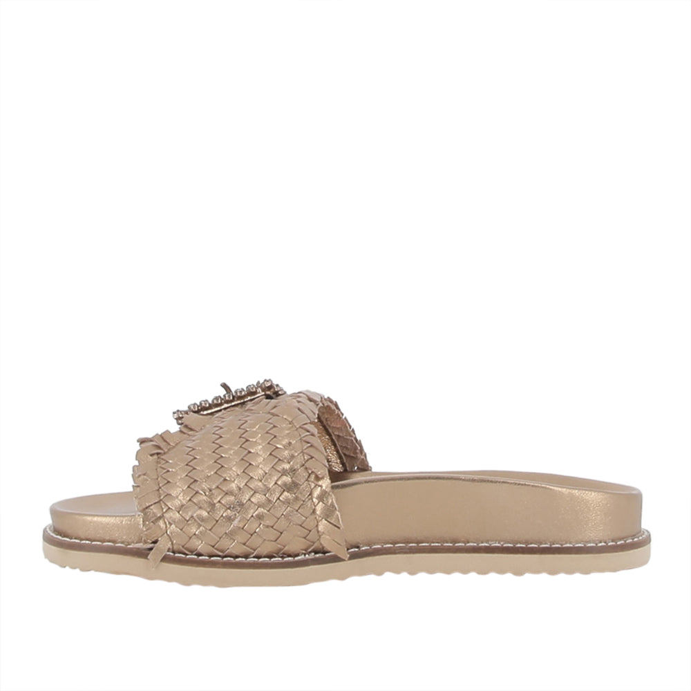 Il sandalo Inuovo Donna in oro unisce eleganza e comfort. Con il suo design raffinato, è ideale per chi cerca un tocco di lusso quotidiano. Perfetto per le donne che vogliono brillare ad ogni passo.Stagione: